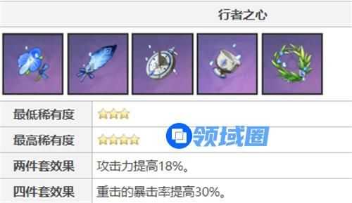 或者就是带【行者之心】这种圣遗物,2件套加攻击力,4件套加重击的暴击率。前期暴击率属性非常稀缺,刚好可莉又主要靠重击打伤害,所以带行者之心四件套增伤收益也是颇为可观的。