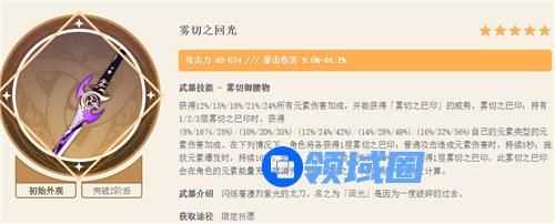 主C/副C万叶伤害上限最高的一把武器,副词条加高额暴击伤害,叠满三层武器特效后,能吃到28%的风元素伤害加成。