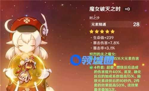 但如果你玩的是雷火超载队,或者是带上行秋/夜兰打蒸发队,可莉还是需要堆个100左右的元素精通的,毕竟反应伤害的占比高起来了。另外你也可以根据可莉带的圣遗物套装来考虑要不要堆精通,带魔女套就可以堆,带渡火套就没必要。