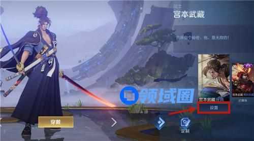 然后拖动皮肤栏,切换到宫本的经典皮肤,点击下方的这个【设置】按钮。