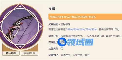 四星锻造武器,普攻伤害加成要比弓藏低,且要满能量后才能触发翻倍的效果,低配版弓藏。