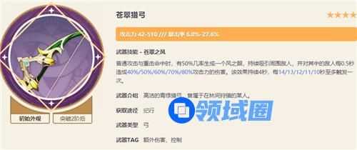 副词条加27.6%的暴击率,宵宫本身对暴击率的需求就很高,带上这把弓就可以选择爆伤头了。武器特效的话,是一个聚怪效果的AOE伤害,由于宵宫的普攻是单体伤害,所以效果并不明显。
