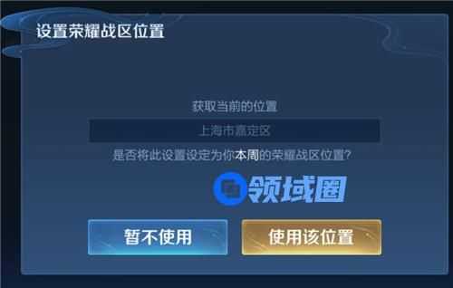 首先战区的确是根据你当前的实时位置来定位的,比如你以前在上海闵行区,后来跑到了上海嘉定区,在嘉定区用手机设置荣耀战区的时候,系统会要求你开启定位功能,然后成功定位在嘉定区,点击使用该位置便完成设置。