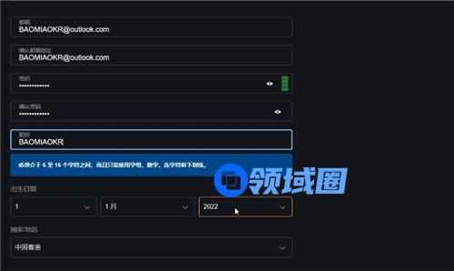 然后在创建一个新账户的界面中,国家/地区选择【中国香港】。