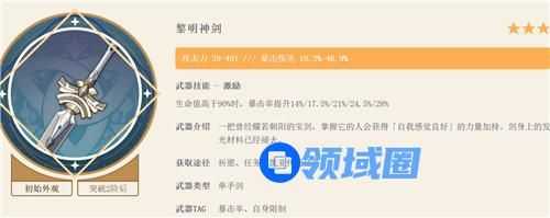 1、黎明神剑:高贵的爆伤武器,虽然很难吃到武器特效的暴击率加成,但也同样是三星武器中最值得带的。其他三星武器都不推荐,暗铁剑副词条加的虽然是元素精通,但伤害提升并不算高,并且特效加的是攻击力,没啥用。