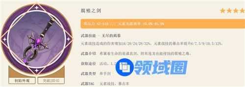 2、腐殖之剑:副词条加元素充能,加快大招循环。武器特效加元素战技能的暴击率和伤害,非常契合久岐忍。