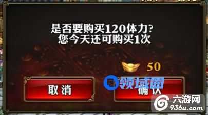 元宝恢复:每天都有一次额外购买体力的机会。需要花费50元宝收获一天的体力量!VIP玩家可以有更多购买次数。