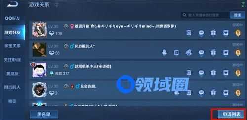 然后点击左侧的游戏好友一栏,毕竟QQ好友和微信好友都是默认存在的,点击右下角的【申请列表】。
