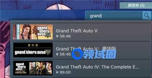 首先gta5的全称为【Grand Theft Auto V】,各位只需要输入Grand后,弹出来的第一个游戏就是gta5,如上图所示,价格只需要58.46元,游戏缩略图为一个性感的美女。