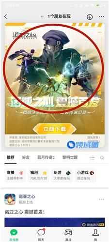 QQ区:跳转QQ游戏汇中心的诺亚之心,或者在QQ动态那一页点击游戏中心。