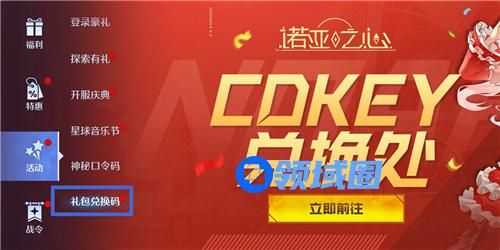 点击左侧的活动-礼包兑换码,点击立即前往。