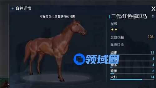 首先要弄清楚,马匹有琥珀、雪银、流金、雅黑和火红这五种血统,你想养什么种类的马匹,就专门抓这一种颜色的马。比如新手开放地区只有棕色和红色, 那就可以全部抓红色的马,或者全部抓棕色的马进行育种。