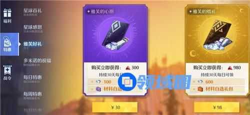 首先性价比最高的是福利-特惠-每日特惠的6元/30元疲劳度礼包,可以解锁首充的星球首礼和次充的星球感恩奖励,相当划算。购买疲劳度礼包,可以在开服前几日多升几级,快速拉开和平民玩家的差距。