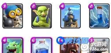 根据主流卡组的进攻选取防守方法, 最好让敌人完全摸不到塔。 比如电猪,冰猪,XB,王子+炸弹人, 宝贝龙+任意,迫击炮,石头人。 至少可以完美低费解其中4个以上, 同费解其他。