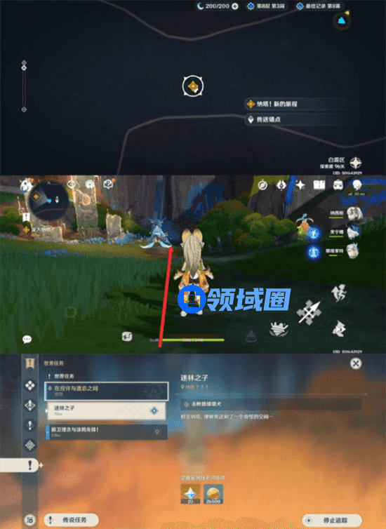3、等剧情结束,从传送点出发到达纳塔,往前走进入秘境,自动接取任务迷林之子;