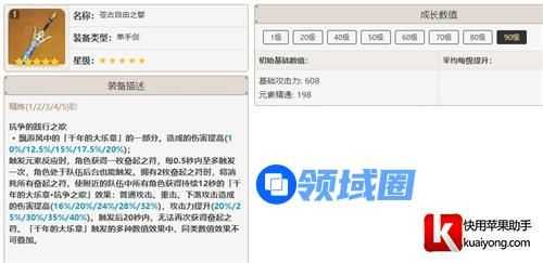 这把是妮露的专武,武器有着542的基础攻击力和66%的生命值加成。我们都知道妮露的技能是基于生命值百分比来计算的,而专武的66的%生命加成非常的强力,而且武器特效也有额外的20%的生命加成非常契合。