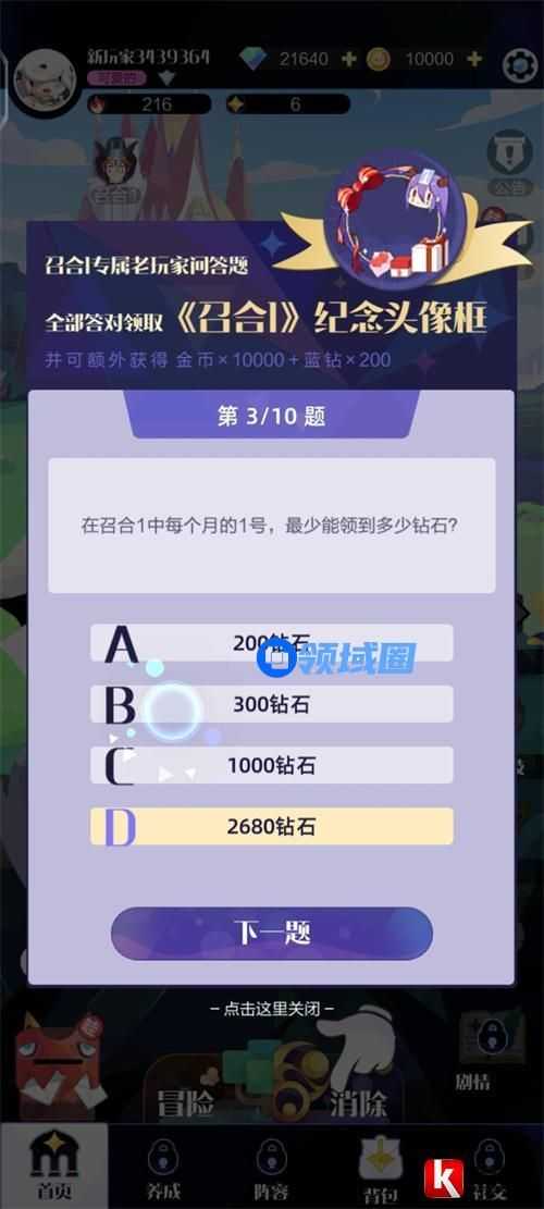 而召唤与合成2的内测头像框答案是:AABDA、AADCC。