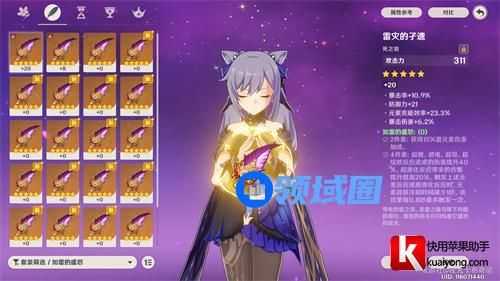 如果没有如雷也可以选择平雷套:主词条时之沙-攻击/精通,空之杯-雷伤值,理之冠-暴击率/爆伤。副词条选择暴击/暴击伤害讲解。平雷的常驻35%的雷伤加成是没有雷草反应时最适合刻晴的雷伤圣遗物。