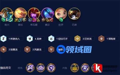 阵容组成:熬兴+泰拉+龙女+赛芬+巴德+佐伊。组成4龙神3岩龙3风暴的阵容。其中主c是全龙神,主坦泰拉。其中在装备不够的情况下优先给龙女装备,因为启动比较快。
