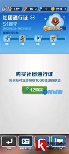 3、由于S1赛季的社团通行证是2022.6.23-2022.9.22即将结束,不建议大家在最后几天去购买,可以等到下个赛季的社团通行证再去购买。