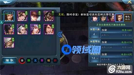 主角和侠客都会有各自的人物招式技能,技能提升对于技能释放影响很大,因为每次提升都是百分比的提升。在秘籍比较难收集的情况下,玩家可以有选择性有计划的学习技能。主角为主,侠客为辅。当然要选择经常用到的侠客,并且防御性、输出型平衡发展、会对后期做活动有所帮助。