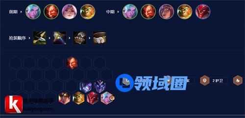 海克斯选择必备万用瞄准镜(彩色)金色也可以但站位要改强度变低。提亚马特,狂刃之心。站位为永恩在最角落,旁边奥拉夫,猴洛。塞拉斯和潘森在前面堵住不要让永恩位置移动,然后布隆一人前排。