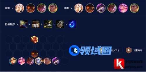 其中赛娜站献祭位给攻速旗帜,主c男枪,厄斐琉斯,男枪给正义,破甲弓,夜幕/水银。人马前排抗伤给虚空,虚空越多越好。然后站位是炮手全最后一排,并且苪尔也站后排。