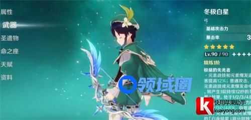 然后是冬极白星。冬极白星是一把非常优秀的武器,只要是弓箭角色都有这不错的表现。词条的608攻击和33%的暴击分布非常的合理,并且武器特效提升元素战技和爆发的伤害非常的适合。