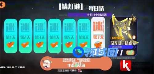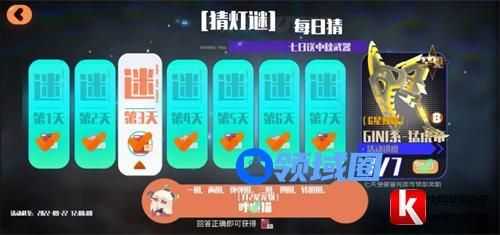 以上就是灯谜的答案,这次活动的截至时间是2022-09-22中午12点,大家一定要抓经时间,小伙伴们可以一次性输入全部答案,然后领取这七日的奖品和最终武器。