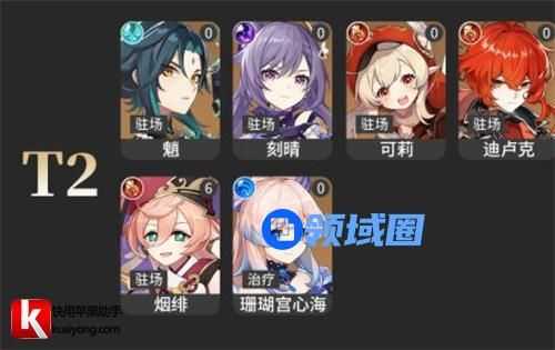 T2:可莉,刻晴,迪卢克,魈,烟绯,心海。刻晴飞升主要还是雷草激化反应确实强,并且刻晴的挂雷频率也不错。