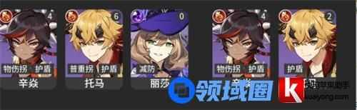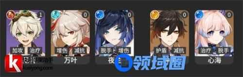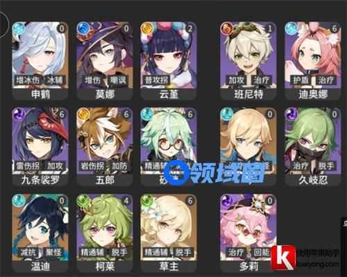T1:申鹤,莫娜,云堇,九条沙罗,五郎,琴,砂糖,温迪,柯莱,草主,久岐忍,多莉。