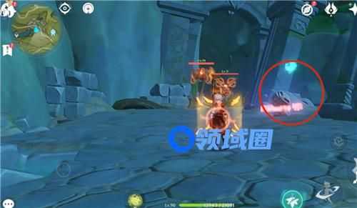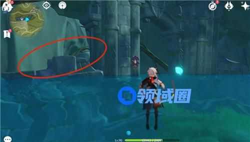在下图红圈的位置将体力回满后,继续往前游,或者用神里绫华一直往前游。
