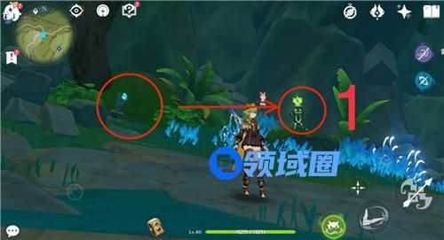 上岸之后,切换草主用元素战技攻击这个红圈内的木头。