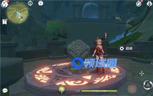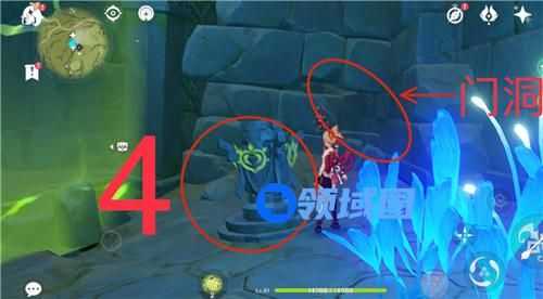 在绿门边柱子上的四叶印往下看,这个是第三个元素方碑,激活它。