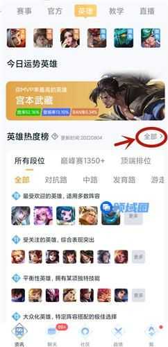 然后会看到一个英雄热度榜,点击右侧的【全部】按钮。