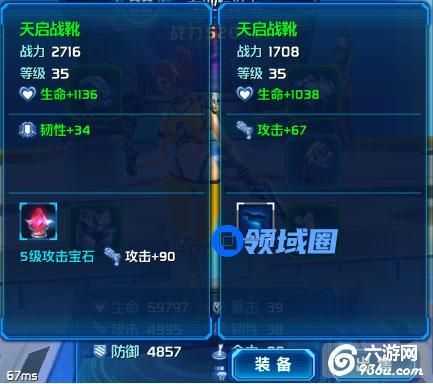 单机右边的装备,可以看到已带装备的属性,和装备栏装备属性对比。