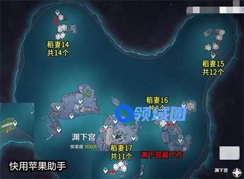 第五处是在稻妻的渊下宫的三处上下小岛当中有非常的多。注意千万三个小岛是需要使用对应的传送门的。