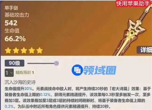 首选武器是专武圣显之钥。这个武器的词条有着541的基础攻击力,66%的生命值百分比加成,并且武器特效还有20%的生命值加成非常强,而妮露的天赋就是根据生命值给技能加伤害非常的契合。