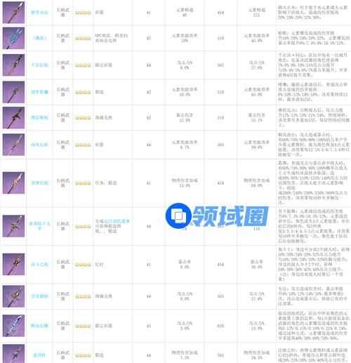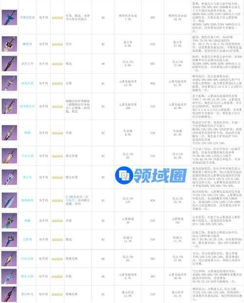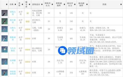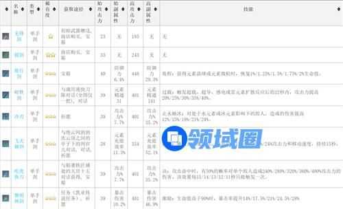 总而言之,目前所有武器都在图内能找到,各位可以先确定自己要找的武器类型,再确认星级,然后点击一下图片就能查看具体数据了。