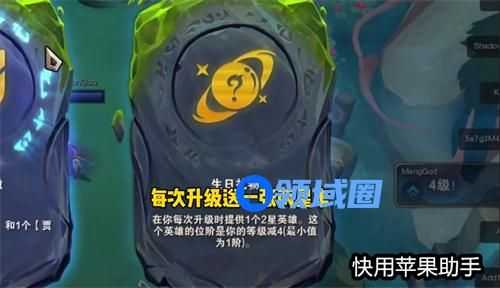 总之生日礼物海克斯的效果:每次升级能够获得一个2星单位,单位的阶级相当于你的等级-4,最小为1阶。所以前期拿到是收益最高的选择,个碧波龙金鳞龙以及海盗幻境龙很搭,配合升级了!就更强了。