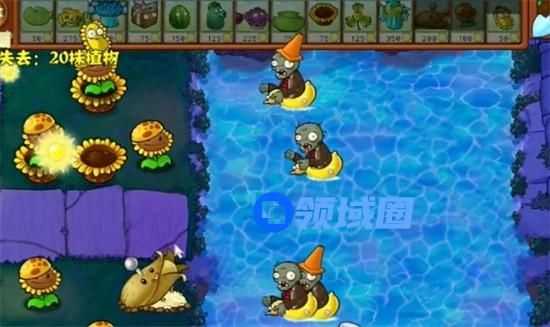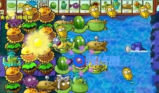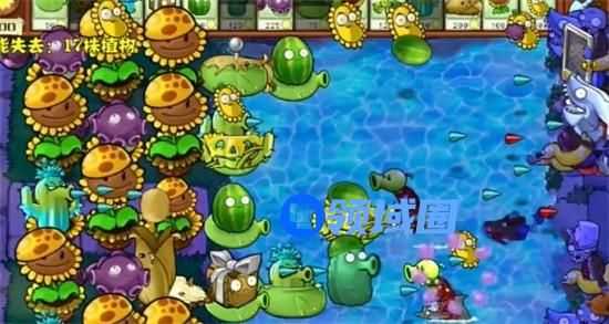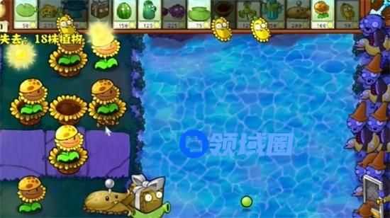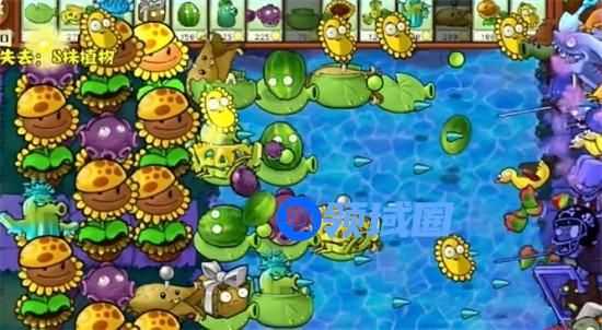 7、最后在水池中种植多个防护类植物就可以过关了。