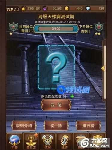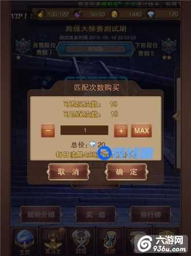 匹配次数:匹配按钮上方,显示当前剩余可匹配次数,基础为10次;根据不同VIP等级,每天可购买不同次数匹配挑战。