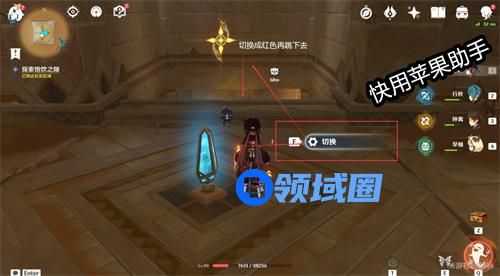 进入大门后往里走会看见一个机关,只有是蓝色的才能解开大门,不是蓝色就需要切换一下。