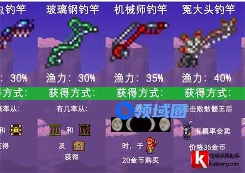 冤大头钓竿:可以从npc机械师处购买,售价35渔力40%,稀有度是绿色。