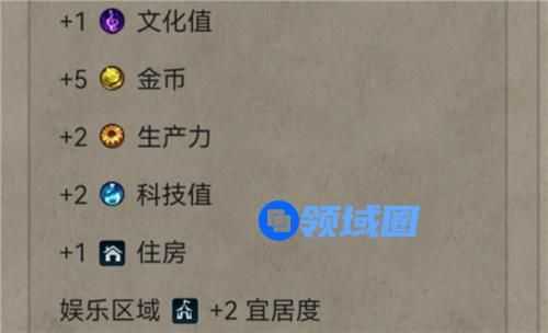 后期宜居度的主要来源,能提供大量宜居度,因为娱乐中心可以通过区域辐射,给城市大范围施加宜居度。如果一个城市娱乐区域有很大的宜居度基数,建议修建一个娱乐中心解决宜居度不够的问题。