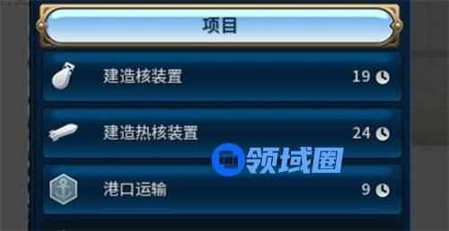 2、完成以之后玩家们就可以在每个城的项目栏中看见制造核弹头的项目。