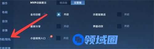2、然后再设置页面左边的菜单栏,找到功能/隐私选项,并点击。