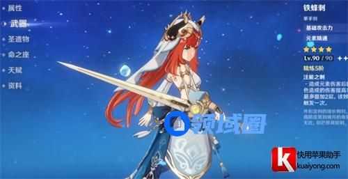 这把武器是和铁蜂刺一样的词条都是165的精通和510的攻击白值。但武器特效就非常的强,可以按照角色的元素精通百分比提升角色的充能效率而且还可以全队加充能,多带还可以叠加,所以也是非常的契合妮露的。