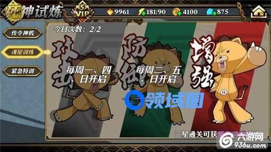 增强训练日可获得增强义魂丸(使用后可获得灵魂之尘,三星通关可获得紫色灵魂碎片);