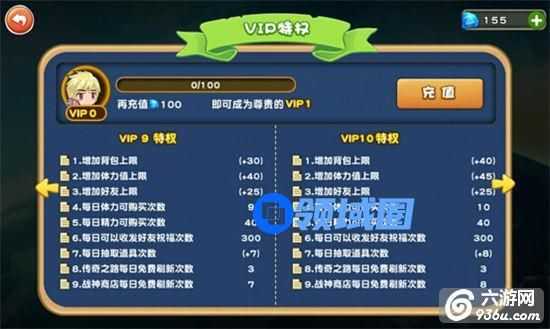 VIP等级共分10级:VIP1~VIP10,每个等级拥有对应特权,VIP等级越高,相应特权越高,具体如图: